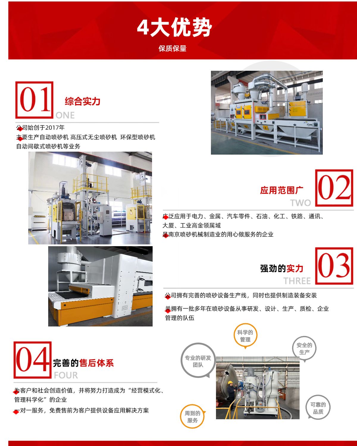 南京華制機械制造有限公司是一家以表面處理機械工程為主的高科技民營企業,公司總部位于福建廈門(黔豐機械)。公司自創立以來一直致力于表面處理工程;始終堅持發揚誠信、創新、溝通為企業宗旨,以技術、服務為立業之本的團體精神,并形成一套完整的設計、研發、生產、安裝、調試、培訓、維護與一體的服務體系。其服務內容包括:自動化噴砂系統、自動化拋丸系統、大型工件噴砂房系統、無塵打磨系統、貴州品牌磨料直銷、噴砂加工、噴鋅、機械配件、設備外包維護、升級、改造等,同時公司為所有承建項目建立維護檔案,設立專門的維護部門,推行快速響應機制,確保在及時解決客戶后續之憂。公司與國內外眾多合作企業建立了良好、穩固的合作伙伴關系,公司逐步形成強大的人才、技術和品牌優勢。并先后為:新凱復材、宸鴻光電、三星、歐瑞康(中國)、廈門太古飛機、正新輪胎,旺旺集團等眾多企業的緊密合作伙伴。公司擁有一支朝氣蓬勃的技術團隊,現有10余名工...